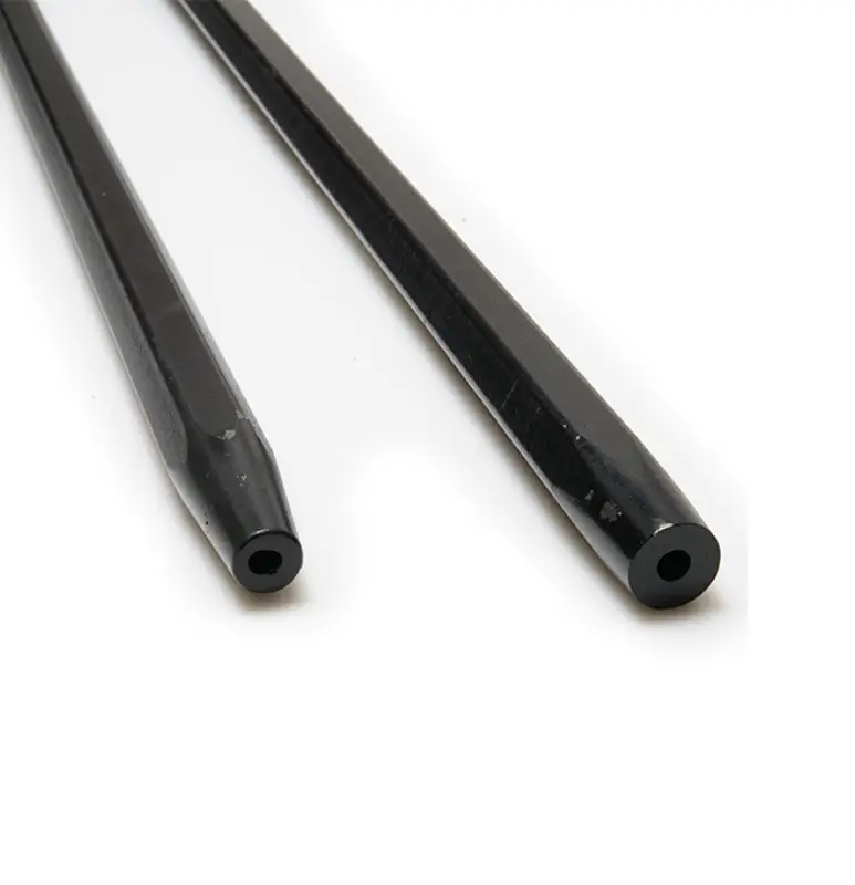 We provide hexagonal tapered drill rods, known for their enhanced rigidity and superior resistance to bending. The hexagonal cross-section offers better flushing capabilities and prevents rotation in the drill chuck, ensuring more stable drilling. Ideal for challenging hard rock formations and applications requiring precise hole alignment, these rods boost drilling efficiency and extend service life in rugged environments.